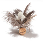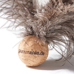 Ein kleiner Korkball mit eingefärbten Staußenfedern wird deine Katze lange beim Spielen begeistern.