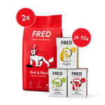 FRED Smoothie Rind mit Hagebutte, Huhn mit Kurkuma, Gemüse mit Spirulina