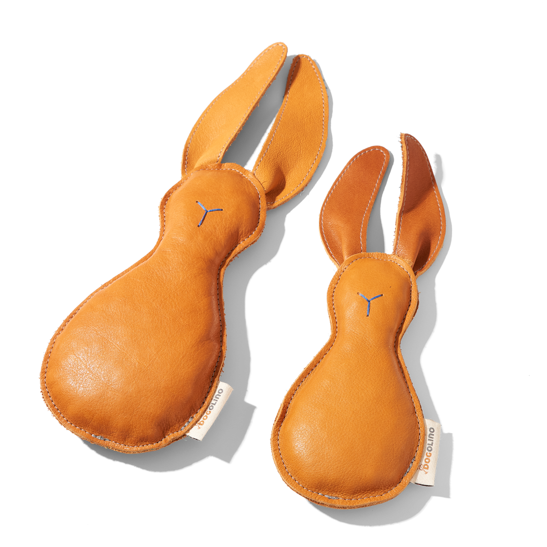 Hergestellt aus pflanzlich gegerbtem, maulfreundlichem Leder. Das Spieltemperament entscheidet über die Langlebigkeit des Produktes. Farbabrieb durch Speicheleinwirkung oder Feuchtigkeit möglich. (Die Testergebnisse der verwendeten Farbstoffe ergaben „unbedenklich“).