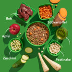 Wildschweine, Hirsche und Rehe, die in unseren Wildsorten verarbeitet werden, sind in ihrer natürlichen Umgebung aufgewachsen und haben somit ein uneingeschränkt artgerechtes Leben.