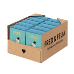 Wenn es draußen kälter wird, braucht dein Hund besonders nährstoffreiche Kost – und genau dafür gibt es unser FRED Wintermenü. Mit 37 % zartem Hirsch-Muskelfleisch und 20 % Hüttenkäse liefert dieses Menü wertvolles Eiweiß und ist dabei besonders gut verdaulich.